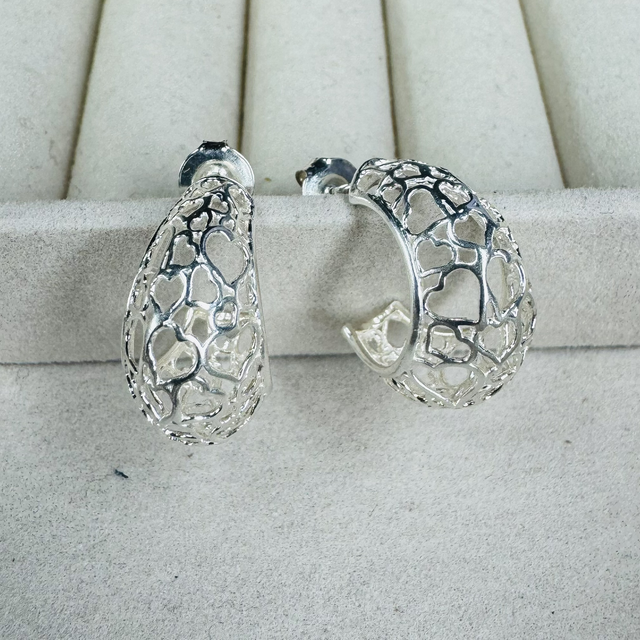 Argola em Prata 925, acabamento trabalhado em corações vazados , boleada , trazendo um brilho e elegante.