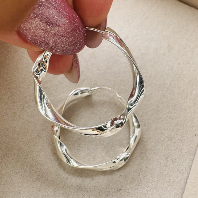 Argola em Prata 925 com design de fio amassado, 27mm, trazendo textura, brilho e um toque moderno à peça.