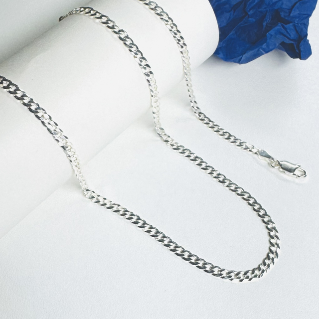 A corrente possui 60 cm e 3.0mm, ideal para quem prefere uma peça marcante, mas confortável.