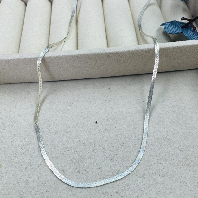 Corrente delicada e elegante em modelo fita fina, com 40 cm, perfeita para realçar o colo com discrição e brilho. Produzida em Prata 925, garante qualidade.